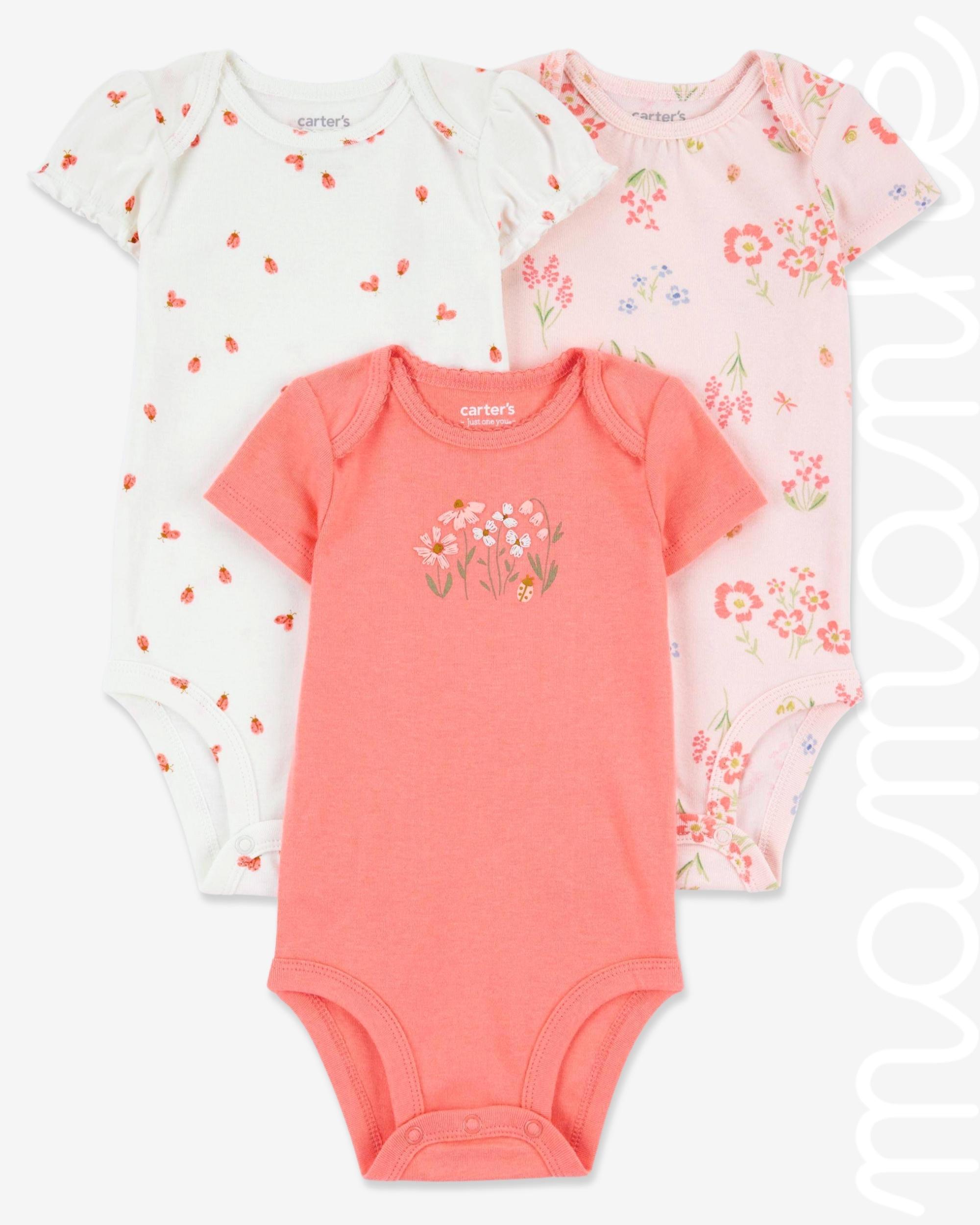 Kit Body Carters Manga Curta Floral Joaninhas