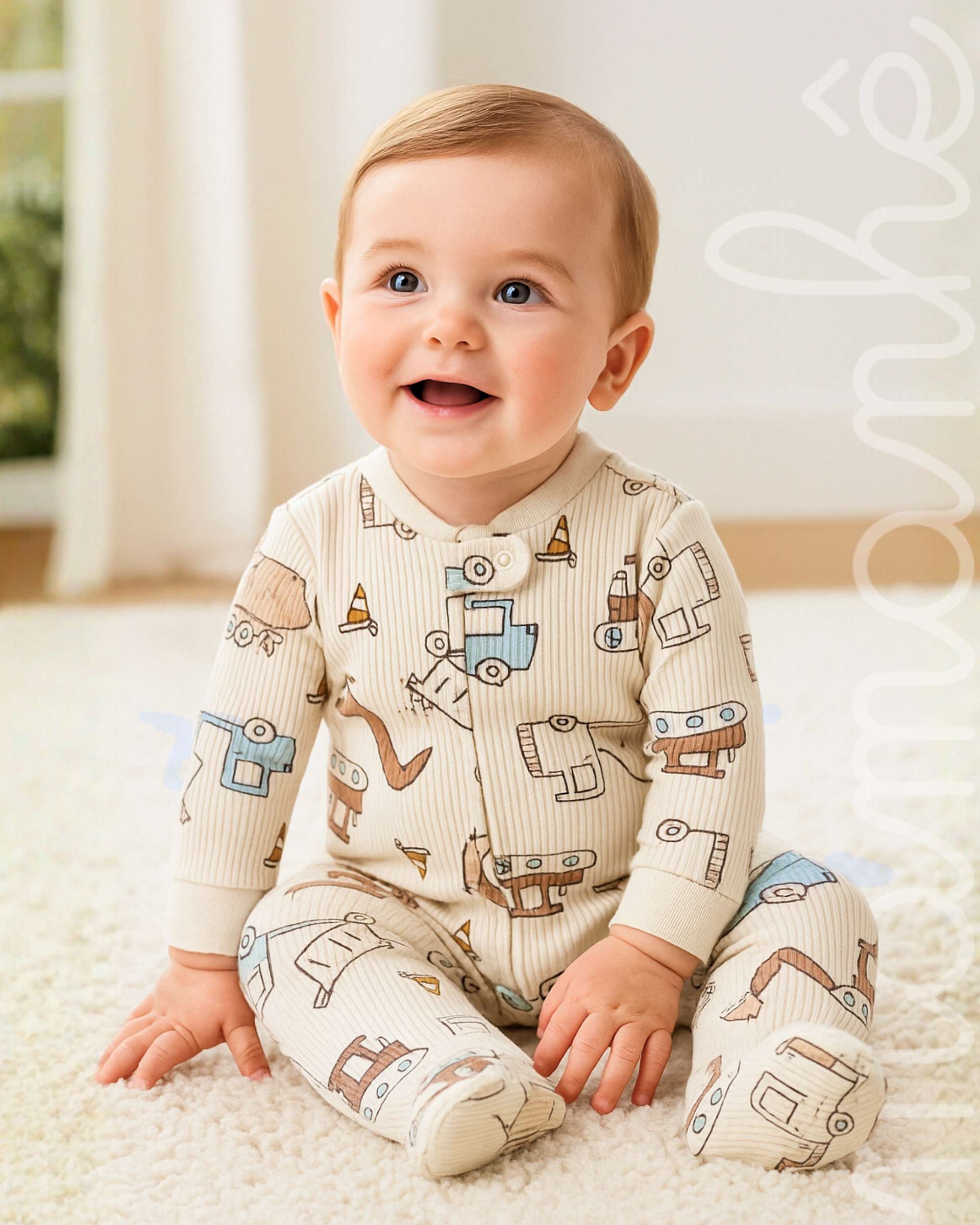 - Tecido canelado que proporciona elasticidade para os movimentos do bebê e um toque extra de maciez e conforto!