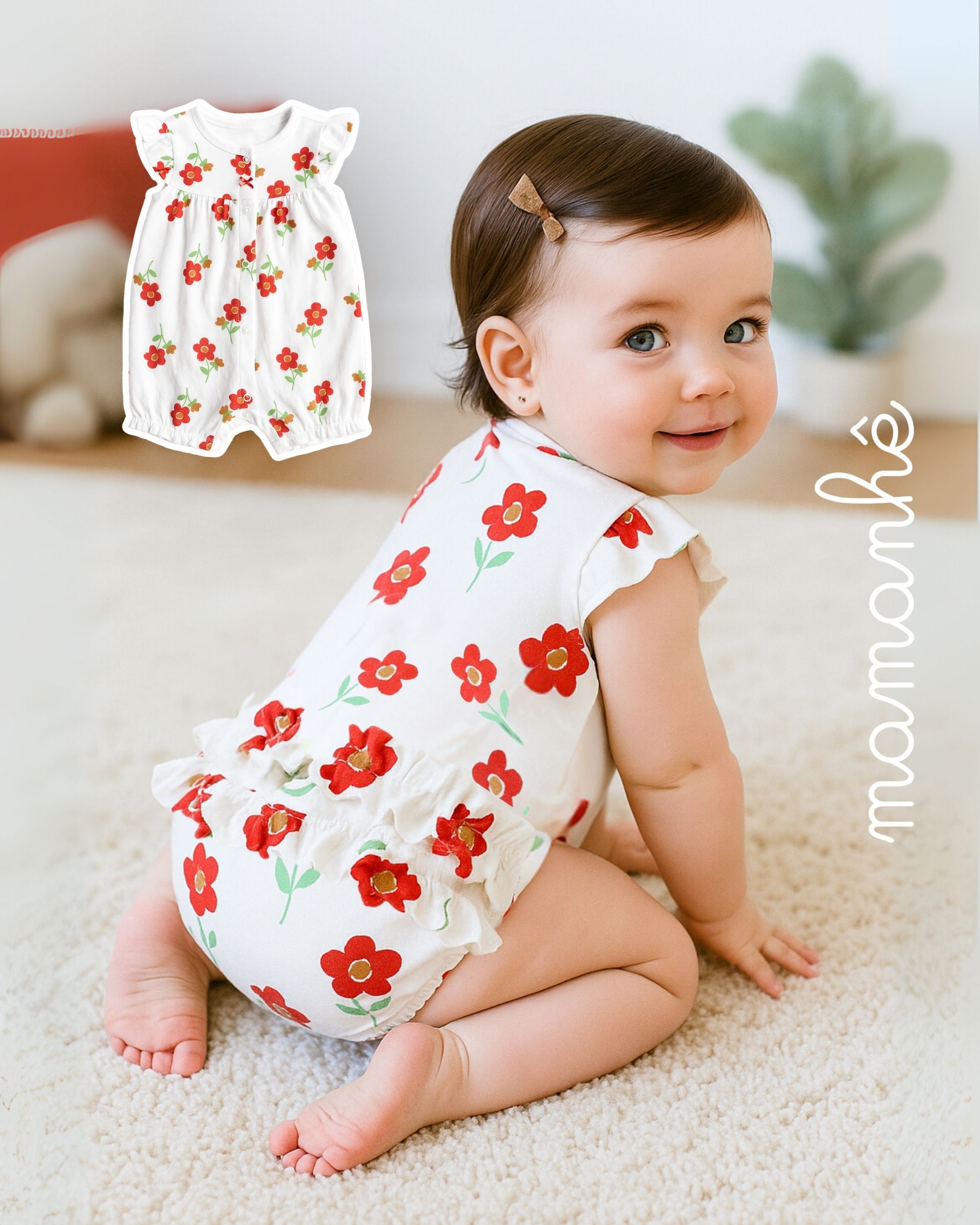 Macaquinho Bebê Carters Flores Vermelhas
